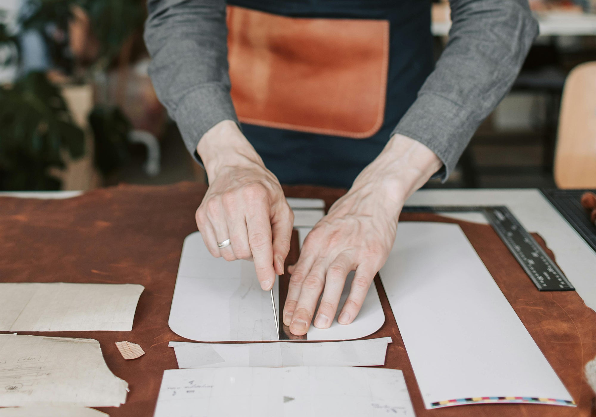 Il primo passo nella realizzazione di una borsa, dopo aver selezionato attentamente i pellami, è il taglio a mano dei vari pannelli della borsa, tenendo conto delle caratteristiche naturali del pellame.